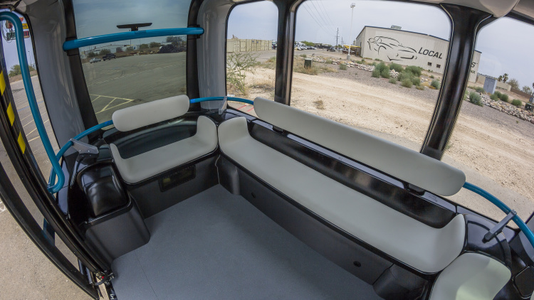 Local Motors, well known for the crowdsourced Rally Fighter off-road coupe, has been diversifying lately. After starting some 3D-printed projects, it has gone in yet another direction, announcing the Olli, an electric minibus that looks like a large phonebooth that's been tipped on its side. And it's autonomous. Local Motors refers to the vehicle as a shuttle it will transport up to 12 people from location to location along a pre-set route. The plan is to allow an Olli to be summoned using an app or a kiosk. It uses lidar, cameras, and GPS to move along its route, making adjustments as needed to avoid collisions. Currently, all Ollis will be monitored full-time by a human overseer, and Local Motors states that it will assume liability in the case of an accident. Olli uses IBM's Watson, a cloud-based cognitive computing platform, to allow riders to vocally communicate with the vehicle. In addition to taking route requests, Watson allows an Olli to answer questions about the vehicle's design and function or suggest restaurants based on the destination. Unlike the vehicles Local Motors is most famous for, the Olli was not a crowdsourced project. It was developed in-house and uses a mix of 3D-printed, aluminum, and steel parts throughout. The electric motor moves the Olli up to 25 mph, though Local Motors plans to eventually increase transit speeds. Legally, Olli can only operate on just a few public roads. Because of this, Local Motors is marketing the vehicle to places like university campuses and airports. Local Motors worked with a number of partners to develop the vehicle over the past year. A single Olli starts operation today at Local Motors' new facility in National Harbor, Maryland. By the end of the year, the company plans to have four vehicles operating in Denmark, two in Miami-Dade County Florida, and a single one in Las Vegas. The company does acknowledge that autonomous vehicles are vulnerable to hacking, though it does claim that the vehicle's steering and braking are separate, off-line components. Currently, the sole Olli in Maryland is free to ride. Local Motors said that fares are controlled by clients just like buses and cabs. The company won't disclose the cost of an Olli, but it did say that it can vary based on the vehicle's use and configuration. |